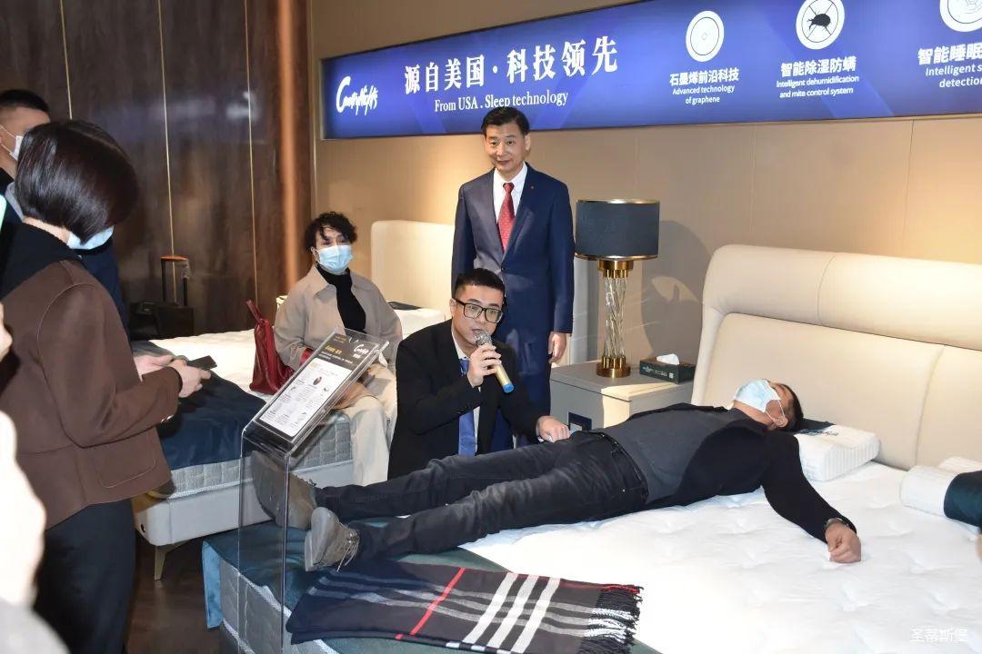 12月25日上午,按照发布会流程安排,参与发布会的嘉宾先到名家居世博园【梦凯莎】旗舰店进行了参观。上午9:45分,经销商嘉宾们陆续来到名家居世博园2楼——美国梦凯莎的展厅里,星空电竞集团集团营销总经理陈玉伟先生带领梦凯莎杨讲师团队为嘉宾们讲解【梦凯莎床垫】新品系列的10种睡感体验及材质工艺,让嘉宾们从工艺特点,科技睡感上,实时体验【梦凯莎床垫】的独有特色。“一张好床垫,睡出好健康”,“梦凯莎”品牌以其卓尔不群的产品优势和为专为国人打造健康舒适睡眠的品牌理念赢得了在场经销商的一致好评。
